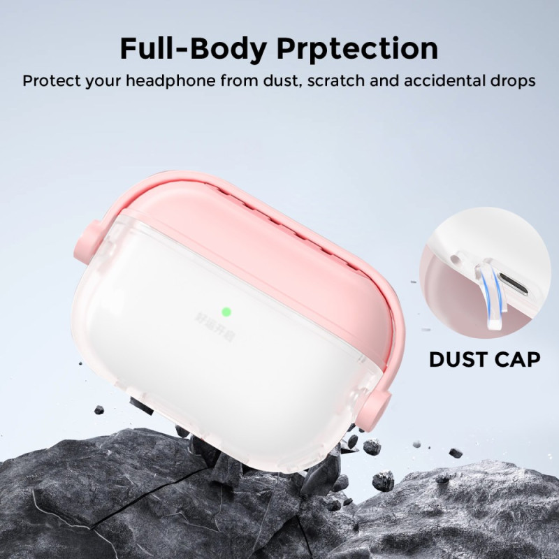 Protege tus AirPods Pro 3 con estilo con esta funda de silicona transparente separable. Diseño en dos partes para un ajuste perfecto, con cierre anti-caída y soporte integrado para el teléfono. Combina seguridad y estilo para el uso diario.