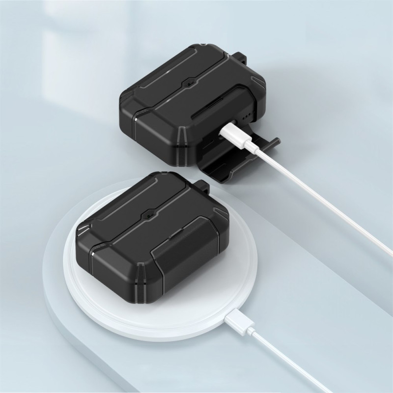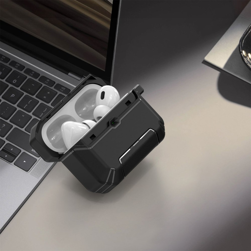 Protege tus AirPods Pro 3 con este innovador estuche que incorpora un ingenioso soporte plegable. El mosquetón integrado facilita el enganche a tus bolsas para transportarlos sin preocupaciones. Compatible con carga inalámbrica y con cable.