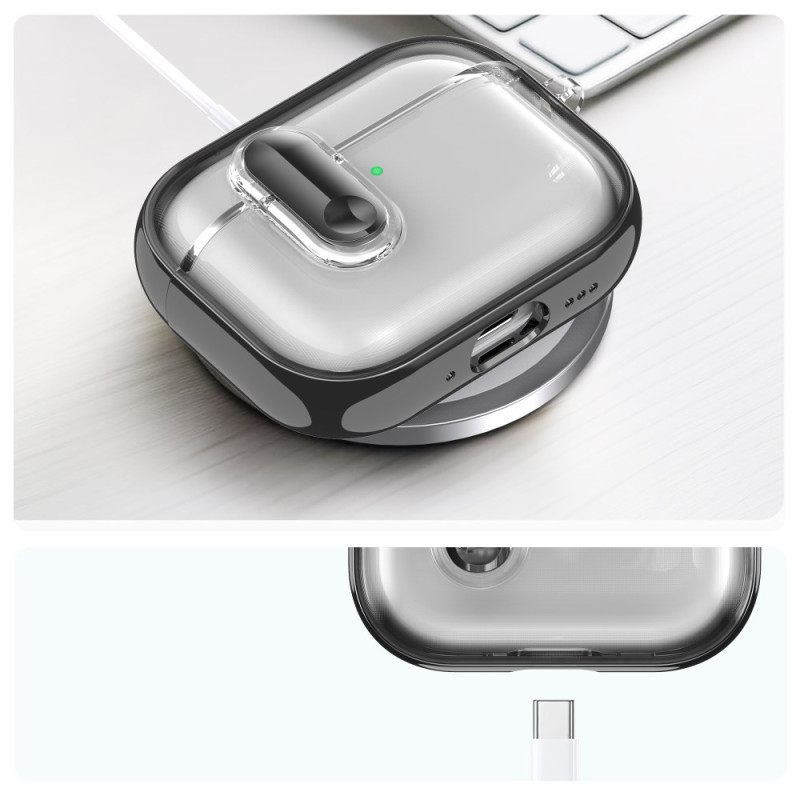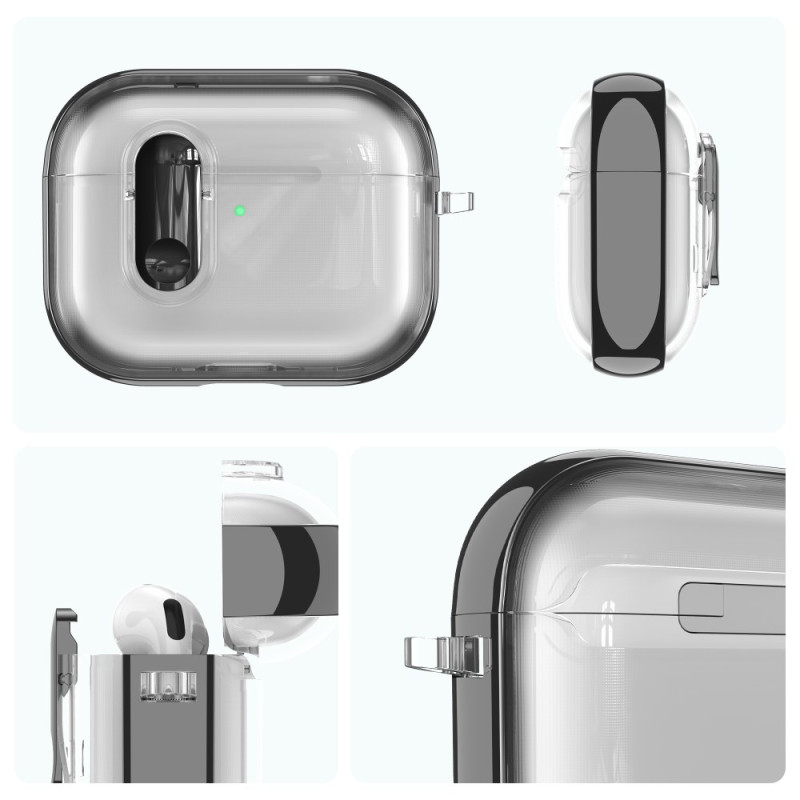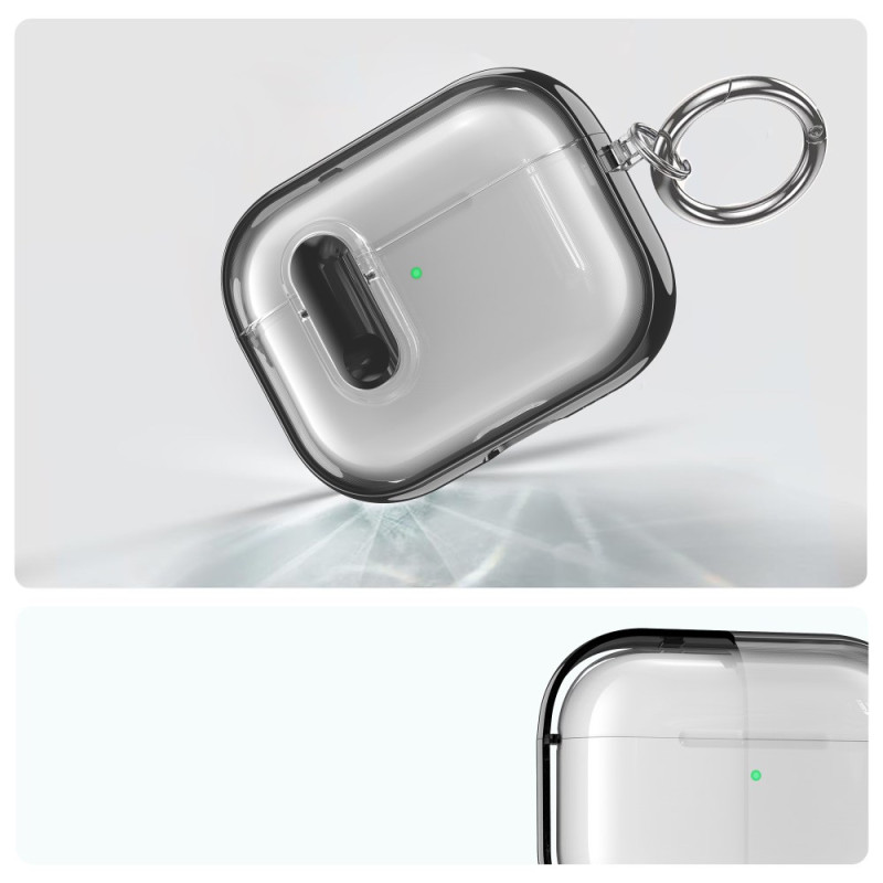 Protege tus AirPods Pro 3 con estilo gracias a este estuche transparente de diseño sofisticado. Su marco galvanizado ofrece un acabado brillante, mientras que el mosquetón integrado facilita su transporte. Compatible con carga por cable e inalámbrica.