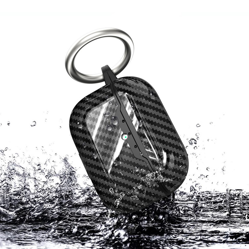 Protege con estilo el estuche de carga de tus AirPods Pro 3 con esta suave funda de TPU con textura de fibra de carbono. Diseño a prueba de golpes con práctico lazo antipérdida para engancharlo a bolsos o llaveros. Puerto de carga accesible sin necesidad de extraerlo.