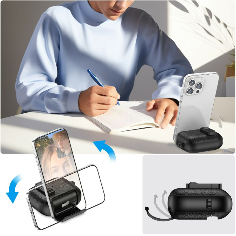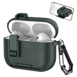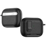 Estuche protector premium para los AirPods Pro 3 de TPU y PC con textura de lichi. Diseño innovador con cierre automático, soporte integrado para el teléfono y mosquetón. Protección integral contra golpes, arañazos y polvo.