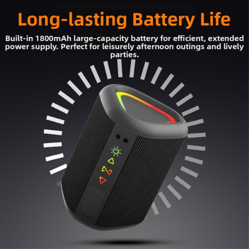 Descubra el altavoz portátil CYBORIS S1 con Bluetooth 5.3, potente sonido de 15 W y certificación IPX6 resistente al agua. Disfruta de iluminación RGB dinámica para encajarse con tu música, batería de hasta 8 horas de duración y múltiples opciones de conectividad (Bluetooth, AUX, tarjeta TF, TWS). Compacto y ligero, te acompaña a todas partes para que disfrutes de momentos musicales inolvidables.