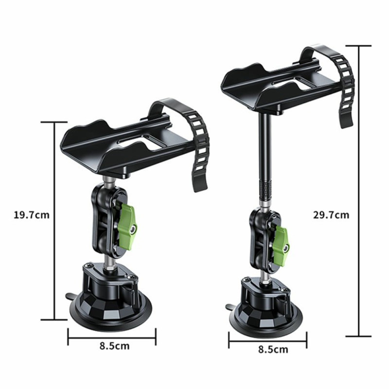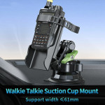 Soporte universal para walkie-talkie con robusta ventosa, compatible hasta 61 mm de ancho. Fácil de instalar y fijar en el vehículo. Diseño duradero con superficie reforzada para una estabilidad óptima en movimiento.