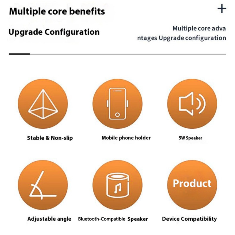 Support ajustable multifonction avec haut-parleur Bluetooth intégré et batterie rechargeable 1200mAh. Profitez d'un son haute qualité tout en maintenant votre appareil en position optimale. Compact et portable, idéal pour une utilisation quotidienne.