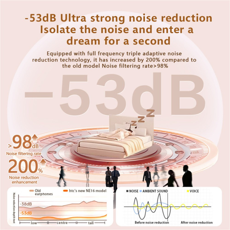 Los auriculares HTC TWS Bluetooth 6.0 ofrecen una escucha abierta para que puedas permanecer atento a tu entorno mientras disfrutas de una comodidad duradera. El algoritmo AURA Voice mejora las frecuencias medias y altas para sacar lo mejor de las voces y ofrecer un ambiente sonoro claro y preciso. El micrófono de alta sensibilidad combinado con ENC reduce eficazmente el ruido del viento para que las llamadas sean fluidas. La duración de la batería, de unas 4,5 horas, y la recarga rápida garantizan un uso continuo, mientras que los controles táctiles facilitan el acceso a los modos de música y juego.