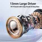 Los auriculares HTC NE29 presentan un diseño ultraligero de sólo 5 g por oreja y almohadillas de silicona líquida para una comodidad duradera. Su resistencia IPX4 los hace adecuados tanto para el deporte como para el uso diario. La ecualización adaptativa, optimizada por IA, ajusta el sonido a la estructura del oído para una escucha personalizada. El micrófono de alta sensibilidad combinado con ENC garantiza llamadas nítidas. Los controles táctiles facilitan la gestión de la reproducción, el volumen y los modos de música o juego.