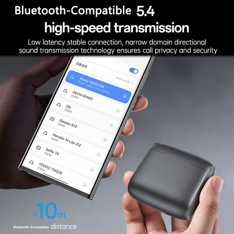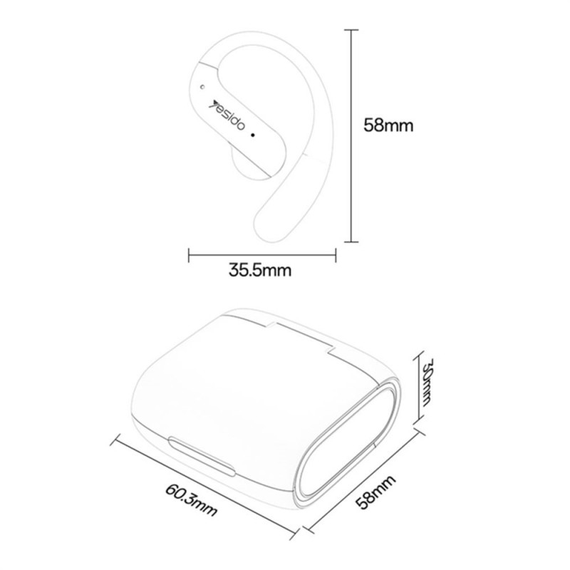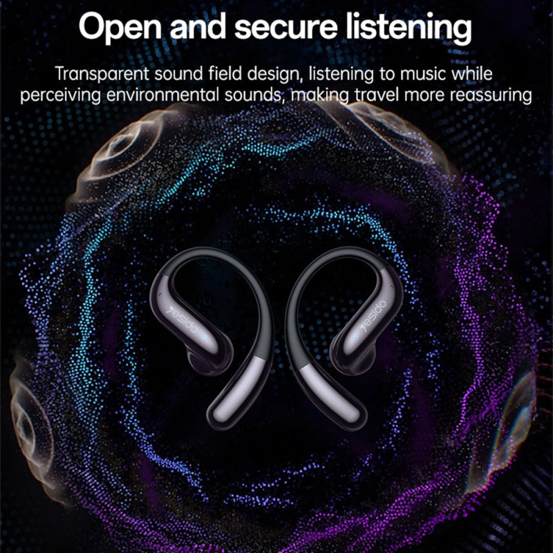 Los auriculares YESIDO YSP28 presentan un diseño abierto que combina el uso profesional y deportivo, ofreciendo una escucha cómoda sin necesidad de insertarlos en la oreja. La reducción de ruido ENC, proporcionada por un micrófono exclusivo, garantiza llamadas más claras al limitar los sonidos del entorno. El controlador de diafragma de titanio de 12 mm ofrece un sonido HiFi preciso. Los ganchos con memoria de forma se adaptan de forma natural a la forma del cuerpo del usuario. La duración de la batería es de hasta seis horas, complementada por un estuche de carga de 450 mAh, mientras que el acabado de gama alta mejora la durabilidad y la estética del producto.