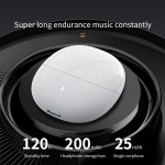 Los auriculares Bluetooth V350 ofrecen una reproducción de sonido de alta fidelidad gracias a sus transductores de membrana compuesta F13, capaces de producir un sonido dinámico y envolvente. La conexión Bluetooth 5.3 + EDR garantiza una transmisión fluida, baja latencia y un posicionamiento preciso del sonido, ideal tanto para música como para juegos. Al abrir la funda se activa automáticamente el emparejamiento, lo que facilita el uso diario. La autonomía es de hasta cuatro horas, ampliada por una batería de 200 mAh. Los controles táctiles permiten una gestión intuitiva de las llamadas y la reproducción.
