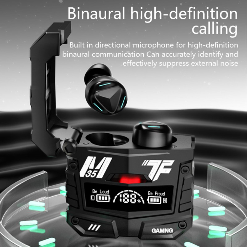Estos auriculares inalámbricos combinan un sonido panorámico de 360° con un ajuste preciso de las tres frecuencias para ofrecer una experiencia auditiva equilibrada, con agudos brillantes, medios nítidos y graves ricos. Su chip Bluetooth 5.3 garantiza una conexión estable, baja latencia y un alcance de hasta 10 metros, ideal para juegos y vídeo. La pantalla LED digital permite comprobar fácilmente el nivel de batería tanto de los auriculares como de la carcasa. La estructura resistente al agua soporta el uso deportivo diario. La funda de gran capacidad también funciona como batería externa para recargar el teléfono, garantizando una cómoda autonomía en movimiento.