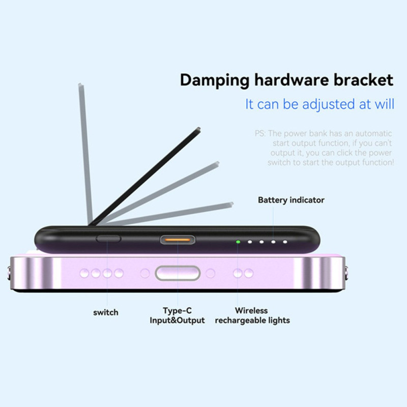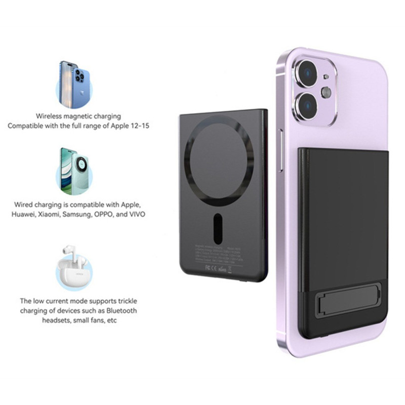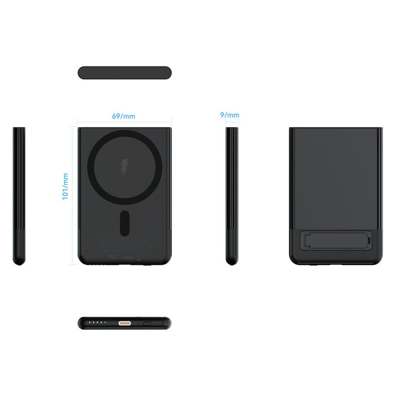 La unión perfecta de estética metálica y eficiencia inalámbrica por fin está aquí. Diseñada para ofrecer la máxima portabilidad, esta batería externa de 5000 mAh tiene un perfil ultrafino de 9 mm. Su funda metálica es garantía de durabilidad y ofrece un aspecto de alta gama. Cuenta con carga inalámbrica rápida de hasta 15 W, para que pueda cargar su dispositivo de manera eficaz sin cables. El soporte integrado es ideal para tener las manos libres mientras se carga. Con 5000 mAh de potencia, es el refuerzo de energía ideal para un día ajetreado.
