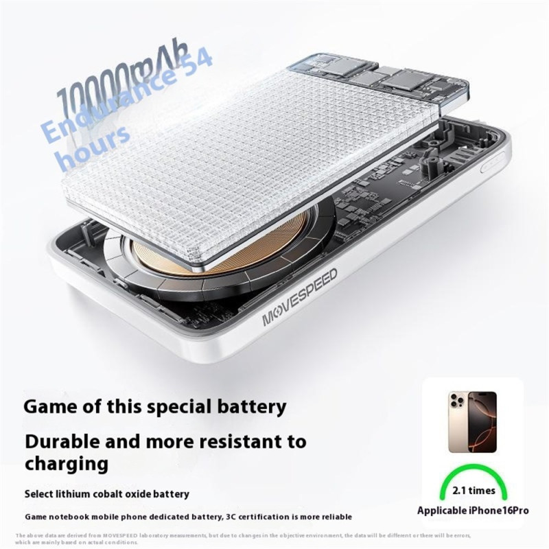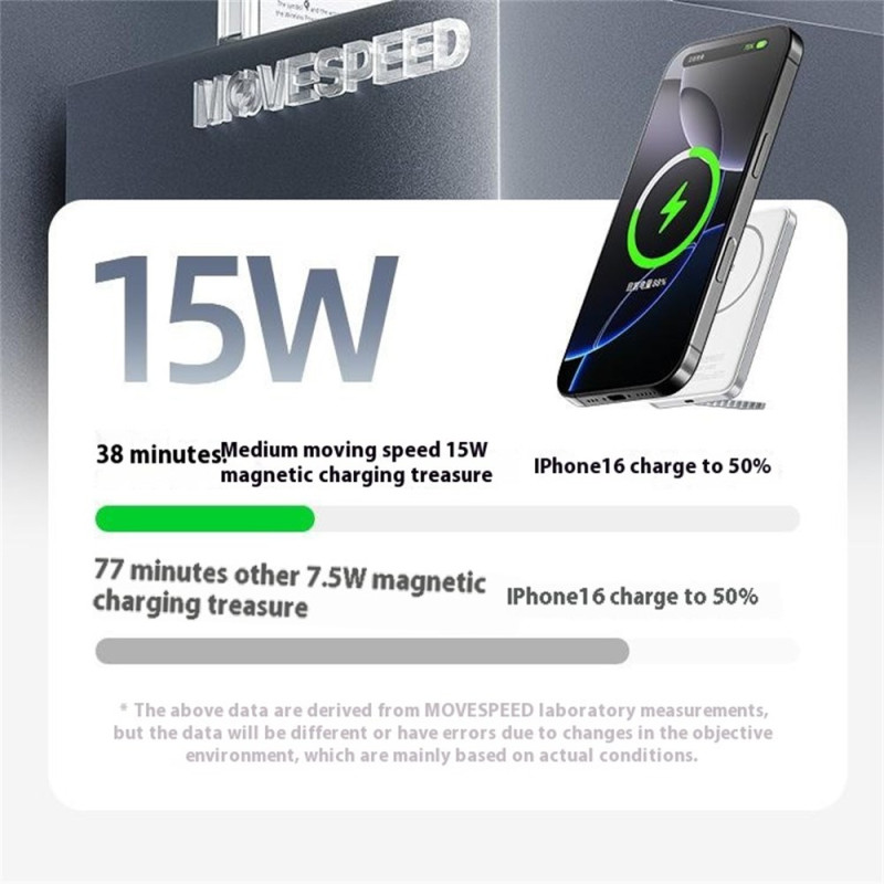 El nuevo estándar en carga inalámbrica se combina con una potencia y velocidad extremas en la Batería Externa MOVE SPEED Qi2. Con una capacidad de 10000mAh, proporciona una importante reserva de energía para varias recargas. Incorpora la última generación de tecnología magnética Qi2, que garantiza una carga inalámbrica eficaz y estable. Su puerto Tipo-C proporciona una potencia máxima por cable de 30 W, garantizando una carga ultrarrápida de tus dispositivos. El soporte integrado de aleación de zinc hace aún más cómoda la visualización manos libres. Su tamaño compacto y peso optimizado facilitan su transporte.