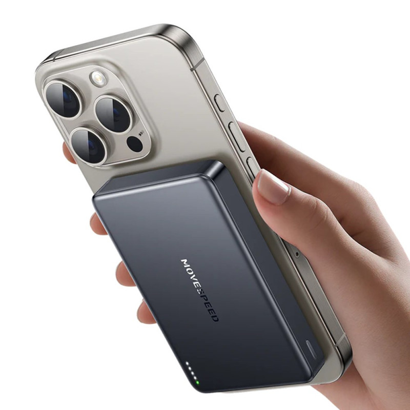 Diseñada para encajar a la perfección en el entorno profesional, esta batería externa combina la estética metálica con la funcionalidad manos libres. Su funda de aleación metálica le confiere un aspecto de gama alta y una mayor durabilidad. Tiene una capacidad de 10000mAh y utiliza tecnología de batería de cobalto puro, lo que garantiza la máxima resistencia y seguridad. El dispositivo admite carga inalámbrica magnética de hasta 15 W, así como carga rápida por cable (20 W). El innovador soporte integrado ofrece una experiencia de visualización estable durante la carga, mientras que su perfil compacto (15,5 mm) facilita su transporte.