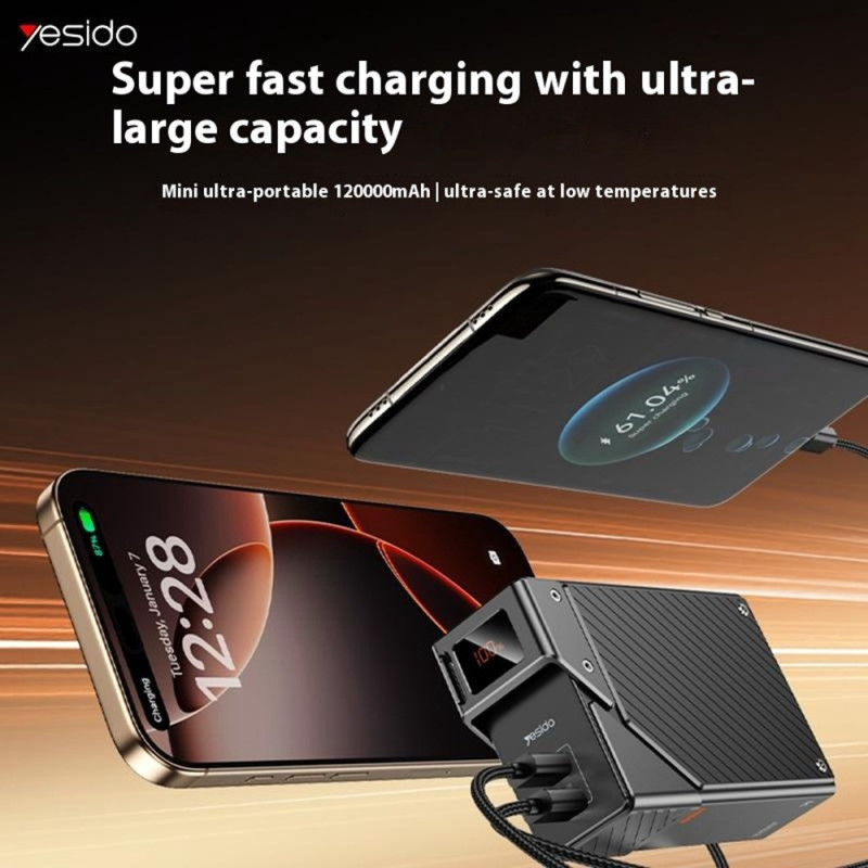 La potencia típica de una estación de trabajo de sobremesa está ahora disponible en el formato de una batería externa portátil. Esta unidad YESIDO de 20.000 mAh ofrece una potencia excepcional de 65 W, capaz de recargar eficazmente los portátiles y smartphones más recientes. Sus dos puertos USB-C ofrecen total versatilidad para alimentar simultáneamente tus dispositivos. A pesar de su gran capacidad, su diseño está optimizado para viajar, incorporando una práctica colgante de transporte. Esta batería es una pieza esencial para los profesionales que exigen una autonomía ininterrumpida y una recarga rápida estén donde estén.