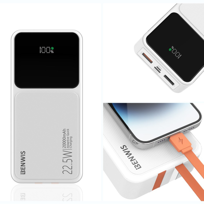 El acceso instantáneo a la energía para todos los dispositivos es la prioridad de esta batería externa BENWIS, diseñada para la eficiencia organizativa. Con una capacidad de 20.000 mAh, garantiza múltiples recargas. El diseño integra cables USB-C y Lightning, eliminando la necesidad de llevar cables adicionales. La potencia de salida alcanza los 22,5 W, lo que garantiza una carga rápida a través de los puertos y el cable Type-C integrado. Su sistema de gestión inteligente protege la salud de los dispositivos conectados. La precisa pantalla LED te mantiene informado de la duración de la batería, y todo el conjunto cumple las normas de seguridad europeas.