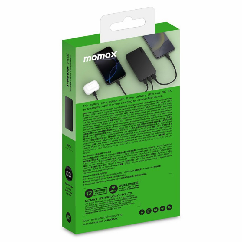 Diseñada para ser el compromiso perfecto entre potencia y portabilidad, la batería externa MOMAX Vital es el accesorio esencial para la movilidad diaria. Su capacidad de 10000 mAh es ideal para múltiples recargas, mientras que su potencia de salida alcanza los 22,5 W a través de USB-A y 20 W a través de USB-C, gracias a la tecnología JSB-CPD. Puede alimentar hasta tres dispositivos simultáneamente a través de sus versátiles puertos. A pesar de sus prestaciones, esta unidad conserva un perfil compacto (16 mm, 236 g). La pantalla LED digital proporciona un control preciso y profesional de la duración de la batería. Este dispositivo cumple la normativa vigente para garantizar un uso seguro.