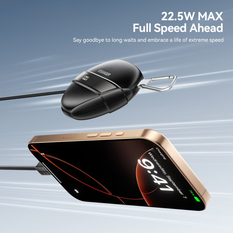 Eliminar las limitaciones logísticas y mantener una carga rápida son los objetivos de esta Batería Externa ESSAGER diseñada para la movilidad activa. Con una capacidad de 10000mAh, proporciona la autonomía necesaria para los desplazamientos diarios o las excursiones cortas. Su potencia máxima de salida de 22,5 W garantiza una recarga ultrarrápida. El cable retráctil integrado de 70 cm elimina el desorden, mientras que el mosquetón permite sujetarla con seguridad a un bolso o cinturón. Su chip inteligente optimiza la eficiencia de la carga. El dispositivo cuenta con las certificaciones CE y RoHS, que acreditan su conformidad con la normativa europea.