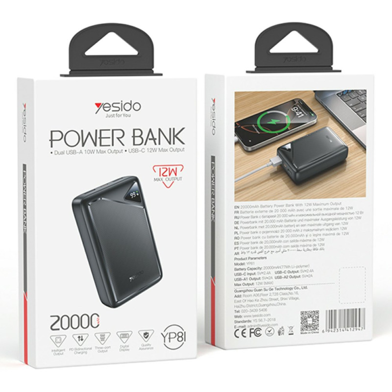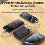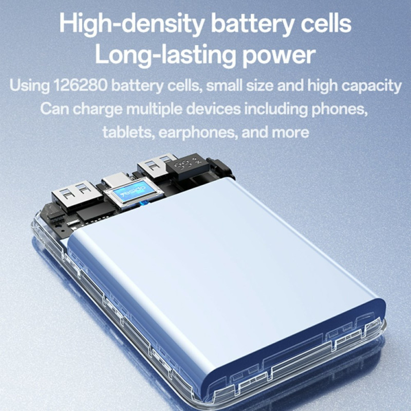 El control preciso de la autonomía y la seguridad del dispositivo son el núcleo de esta batería externa de 20000mAh, diseñada para ofrecer fiabilidad. Su colosal capacidad de 20000mAh garantiza múltiples recargas, esenciales para los viajes largos. Ofrece una salida de energía estable de 2,4 A, asegurando un suministro de energía eficaz a través de sus tres puertos (2 USB-A, 1 Tipo-C). El puerto Tipo-C funciona tanto como entrada como salida, maximizando la flexibilidad. El control de temperatura NTC integrado y la certificación CE-EMC garantizan un uso seguro conforme a las normas europeas.