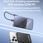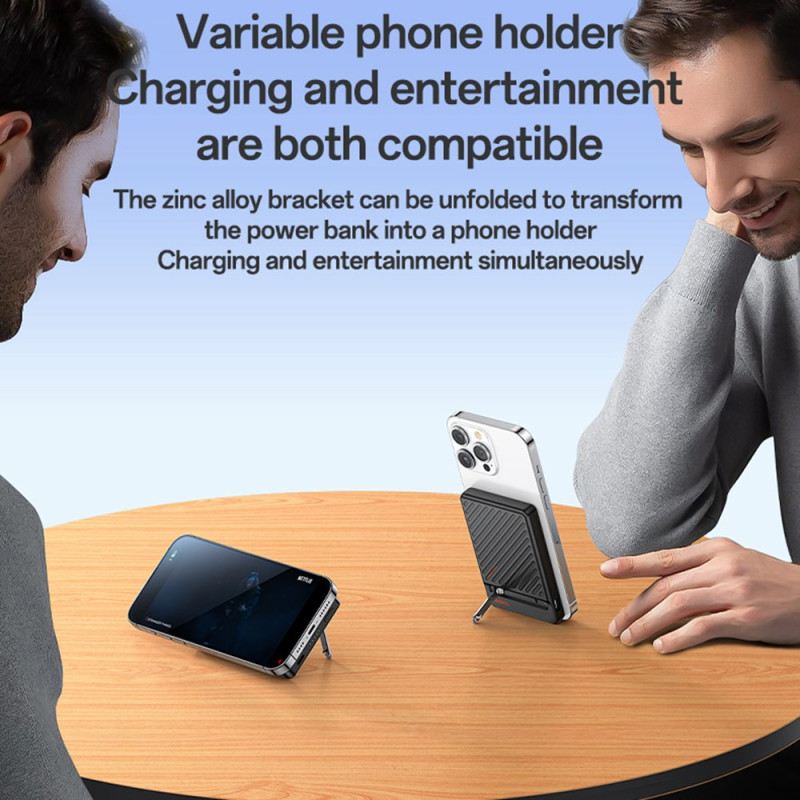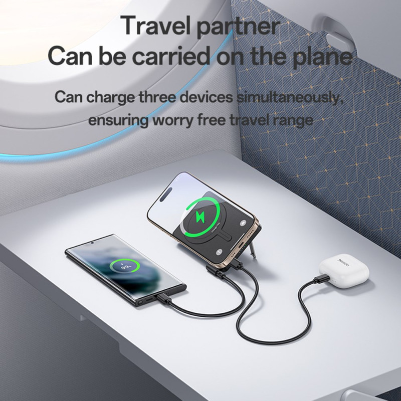 La eliminación total de la ansiedad de carga está garantizada con esta solución de alimentación 3 en 1, que integra cables, carga inalámbrica y soporte. Esta batería externa de 10000 mAh ofrece 15 W de potencia inalámbrica magnética y 20 W de carga rápida por cable. Incorpora un cable Type-C para una recarga inmediata y sin complicaciones, y su soporte retráctil permite una visualización manos libres. La seguridad es una prioridad: el dispositivo beneficia de un exclusivo sistema de protección doble contra sobrecalentamiento y PCBA, que garantiza un uso fiable que cumple las normas europeas.