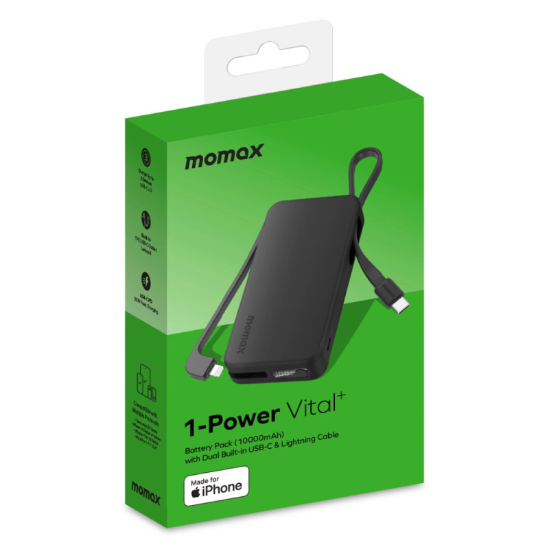La convergencia de la certificación MFi de Apple y la potencia PD de 30W ofrece una solución de carga portátil sin precedentes. Esta Batería Externa MOMAX 10000mAh está diseñada para una eficiencia profesional, proporcionando una carga rápida de hasta 30W. La integración de dos cables USB-C elimina la necesidad de cables adicionales, garantizando una solución completa y ordenada. Su certificación MFi confirma la compatibilidad y seguridad de la recarga de iOS. Con tres salidas disponibles, puede alimentar varios dispositivos simultáneamente. La precisa pantalla LED facilita la comprobación del rendimiento.