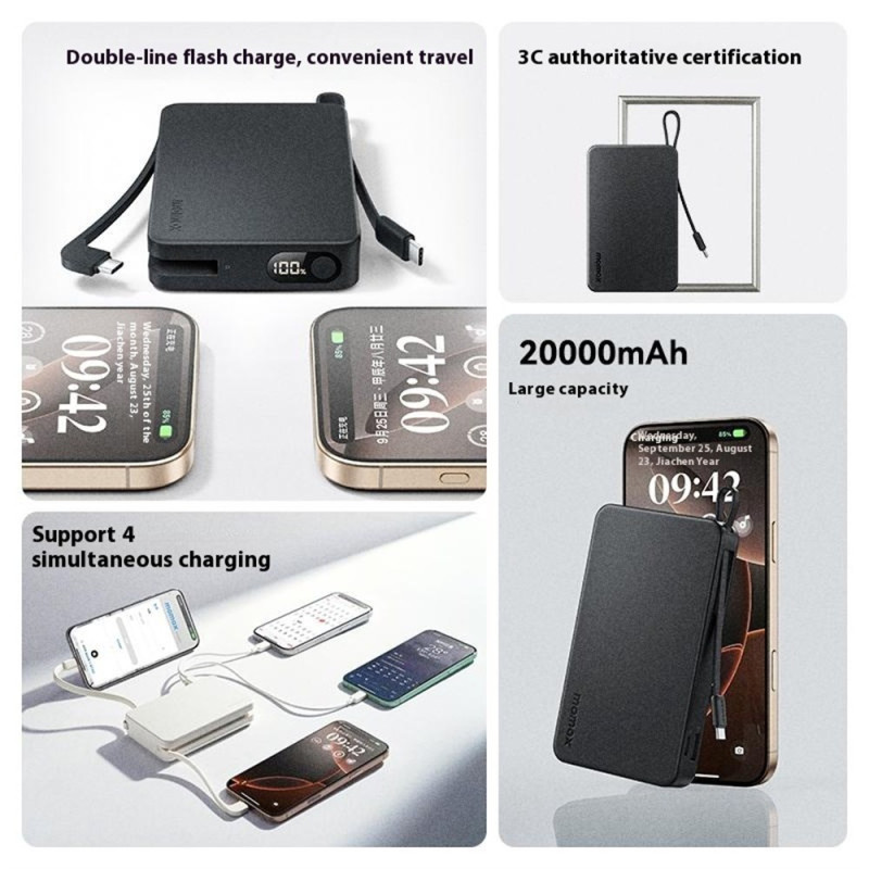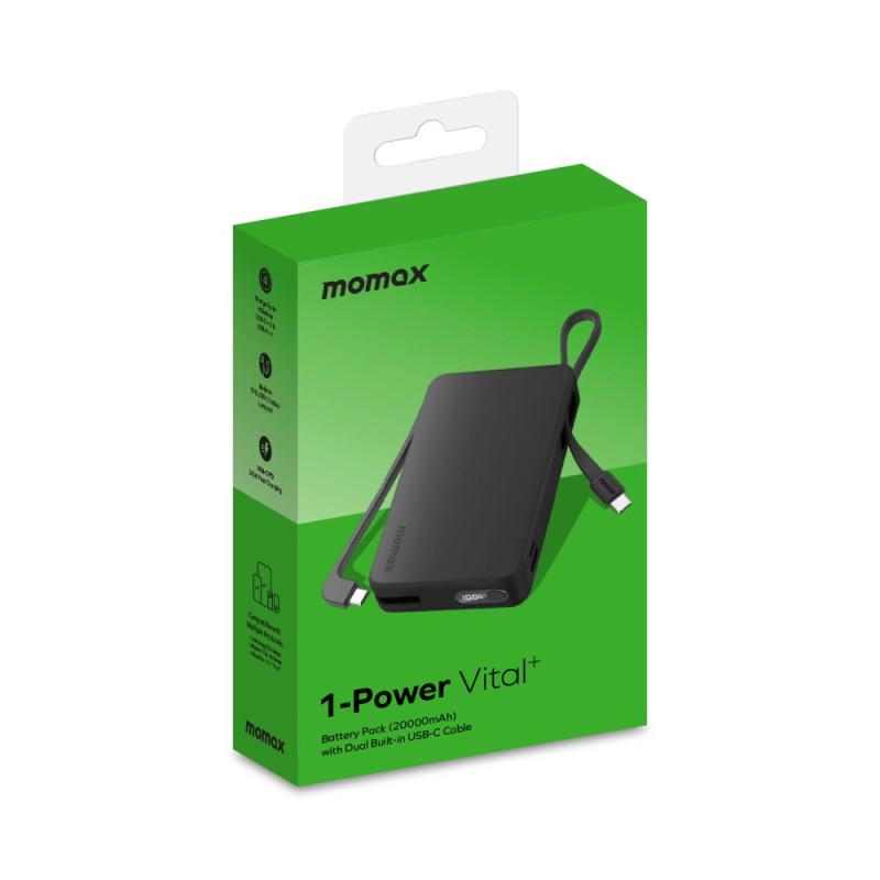Esta batería externa MOMAX, una herramienta de productividad esencial, es el centro de energía definitivo para los profesionales que se desplazan. Su colosal capacidad de 20.000 mAh garantiza una mayor autonomía para todos tus dispositivos. Ofrece una potencia de carga máxima de 30 W, lo que garantiza una recarga ultrarrápida. La integración de dos cables USB-C elimina la dependencia de cables externos, proporcionando una solución completa y ordenada. Con cuatro salidas disponibles, puede cargar hasta cuatro dispositivos simultáneamente. La funda de PC+ABS garantiza una gran durabilidad.