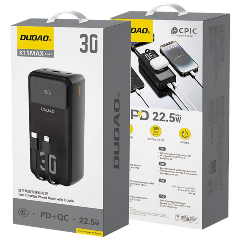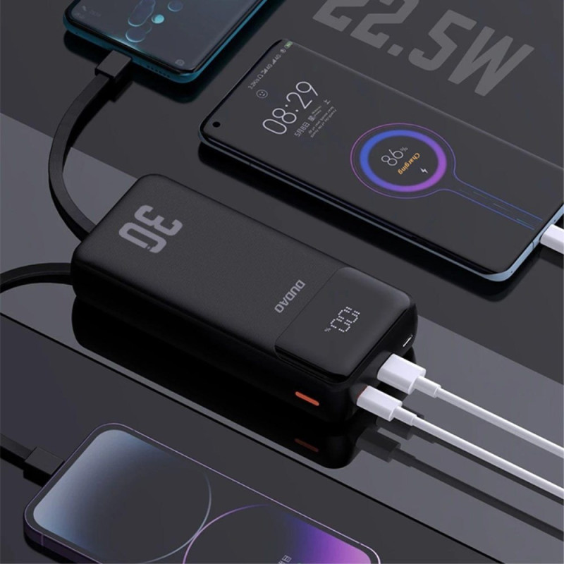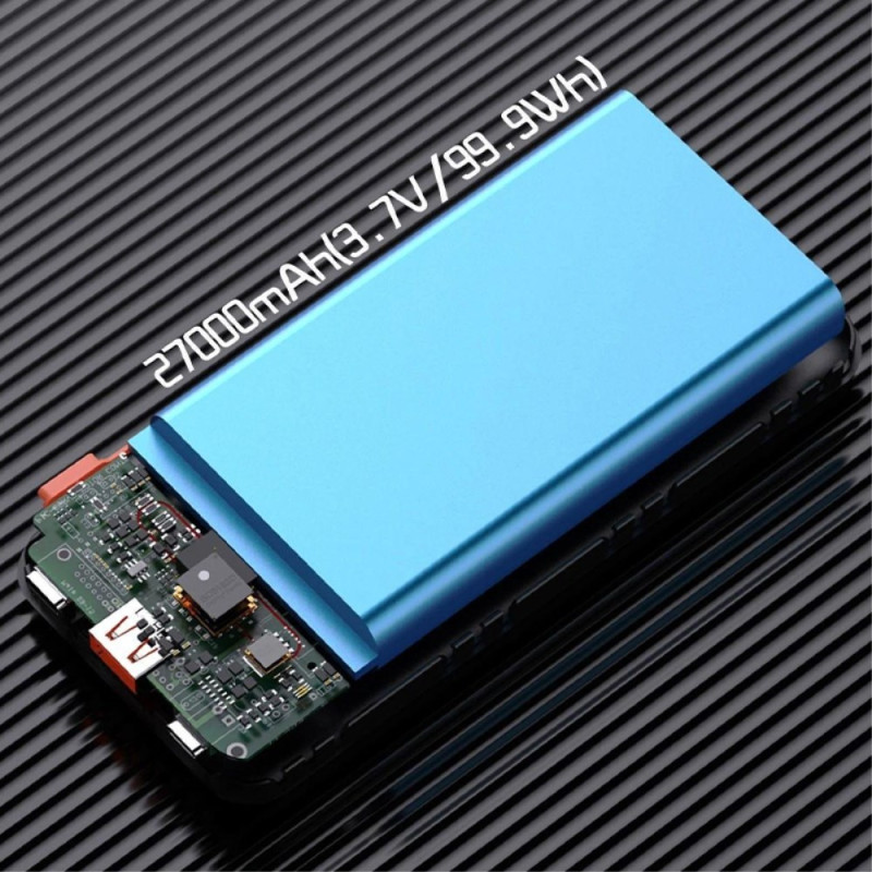 Esta batería externa de 27000 mAh ofrece una generosa reserva de energía para soportar varias recargas completas cuando estás en movimiento. Los cables iP y Type-C integrados simplifican el uso al eliminar la necesidad de llevar cables adicionales. La carga rápida PD de 22,5 W proporciona energía eficaz para los dispositivos compatibles, mientras que la duradera funda para PC garantiza un uso seguro. Su tamaño compacto hace que sea fácil de transportar, incluso con una capacidad tan grande.