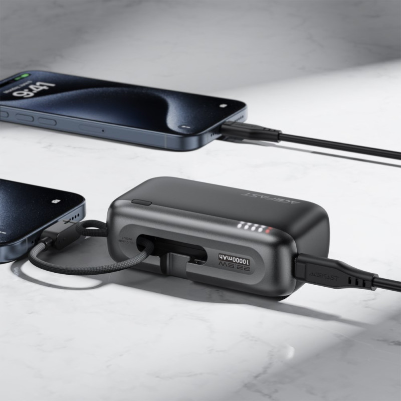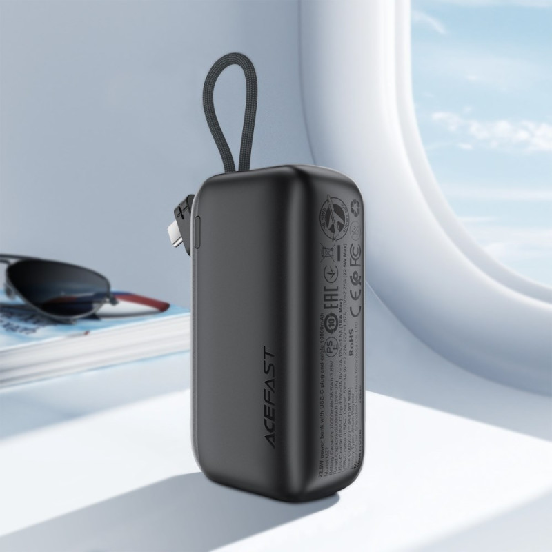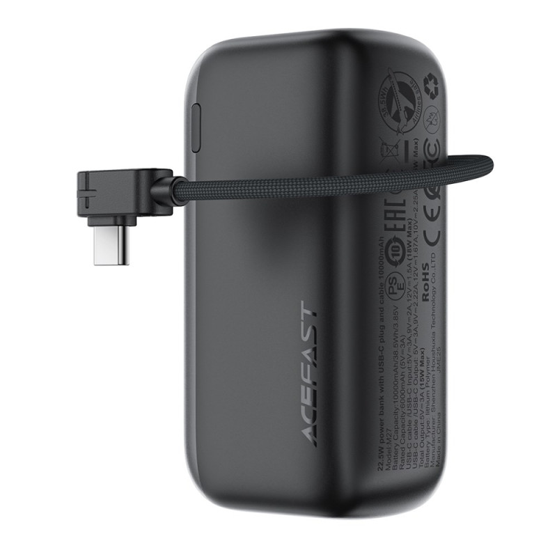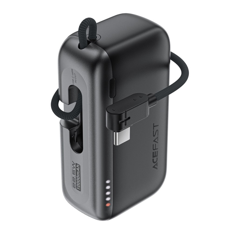 Esta batería externa compacta combina potencia y practicidad, para que pueda llevarla con usted dondequiera que vaya. Con sus 10000 mAh, ofrece una cómoda reserva de energía sin dejar de ser ligera y fácil de deslizar en un bolsillo. Su cable USB-C retráctil evita tener que llevar accesorios adicionales, y la carga rápida de 22,5 W garantiza un suministro de energía eficaz para los dispositivos compatibles. La pantalla LED te permite comprobar los niveles de energía de un vistazo, para que puedas mantenerte fresco durante todo el día.