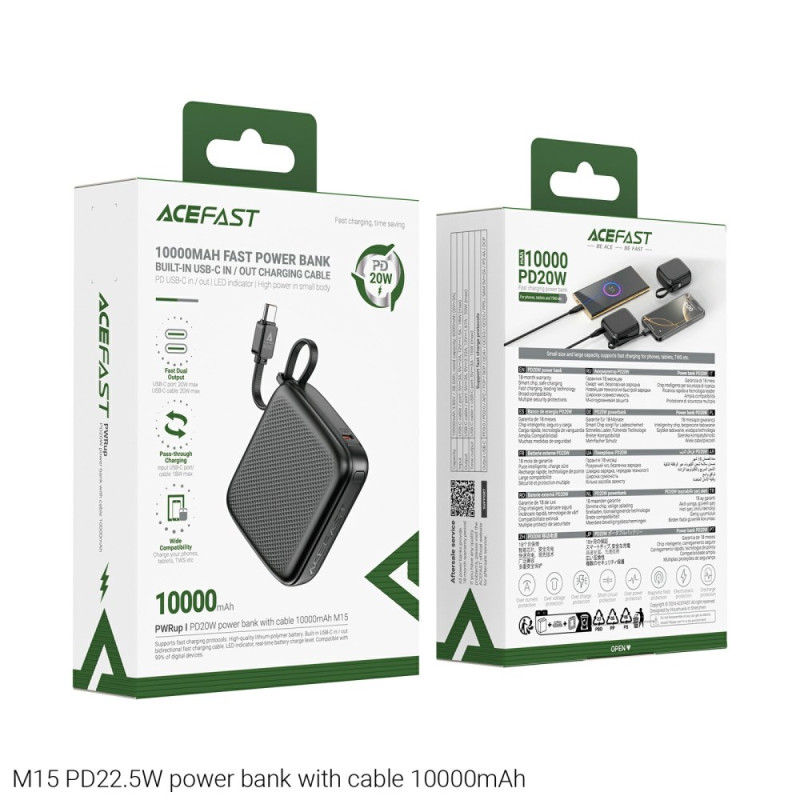 Esta batería externa ACEFAST de 10000 mAh ofrece una carga rápida y fiable gracias a la tecnología PD de 20 W, ideal para alimentar dispositivos compatibles de forma eficiente. Su cable Type-C integrado simplifica su uso al eliminar la necesidad de llevar cables adicionales. Compacta y ligera, se desliza fácilmente en un bolsillo o bolso. Los materiales ignífugos y las celdas de cobalto garantizan una mayor durabilidad, mientras que las certificaciones internacionales garantizan un uso seguro, incluso cuando se viaja.
