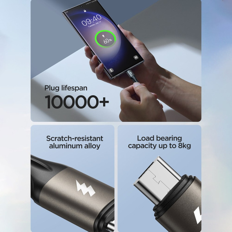 Avec une longueur de 3m, il est suffisamment flexible pour résister à plus de 10 000 pliures sans se casser.