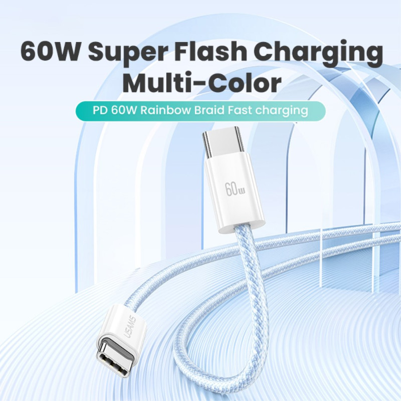 Descubre este cable de carga rápida de 1,2 m Usams Type-C a Type-C, que ofrece una carga de alta potencia sin sobrecalentamiento y una doble función de carga y transmisión de datos.