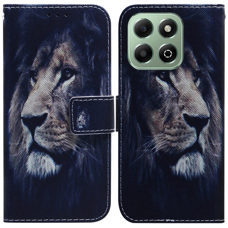 Elegante funda cartera con motivo de león para Honor X6b 4G. Diseño de cuero con tarjetero integrado, soporte plegable y cierre magnético seguro. Protección completa contra golpes y arañazos mientras mantienes tus tarjetas a mano.