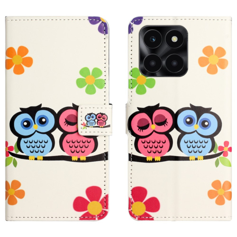 Protege tu Honor X6c 4G / X6b 4G / X6a 4G con estilo gracias a esta funda cartera con un encantador motivo de pareja de búhos. Combina estilo y practicidad con ranuras para tarjetas, un soporte integrado y un cierre magnético seguro.