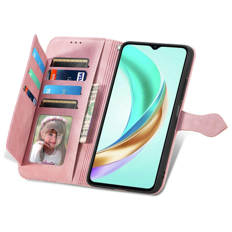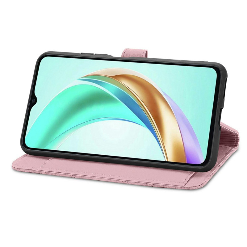 Elegante cartera en piel de PU con refinado motivo floral. Cuenta con múltiples ranuras para tarjetas, bolsillo exterior con cremallera, soporte integrado y práctica colgante de mano. Protección completa contra arañazos y golpes para tu Honor X6b 4G.