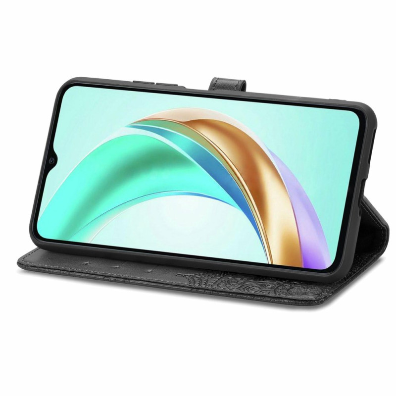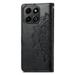 Elegante funda cartera para Honor X6b 4G con diseño de mandala grabado. Incluye 3 ranuras para tarjetas, bolsillo para billetes, soporte manos libres y práctica colgante de mano. Cierre magnético seguro para una protección óptima.