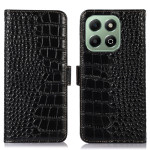 Descubre la elegancia y la practicidad con esta funda cartera para Honor X6b 4G. Con una sofisticada textura de cocodrilo, combina una protección reforzada con funciones inteligentes: 3 ranuras para tarjetas, bolsillo para billetes y tecnología anti-RFID.