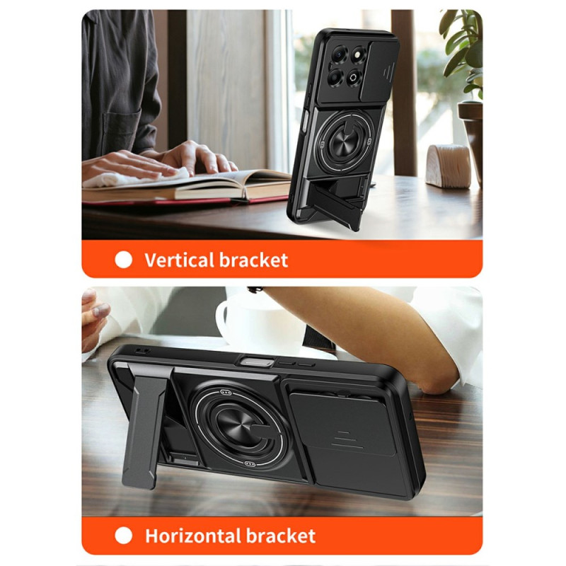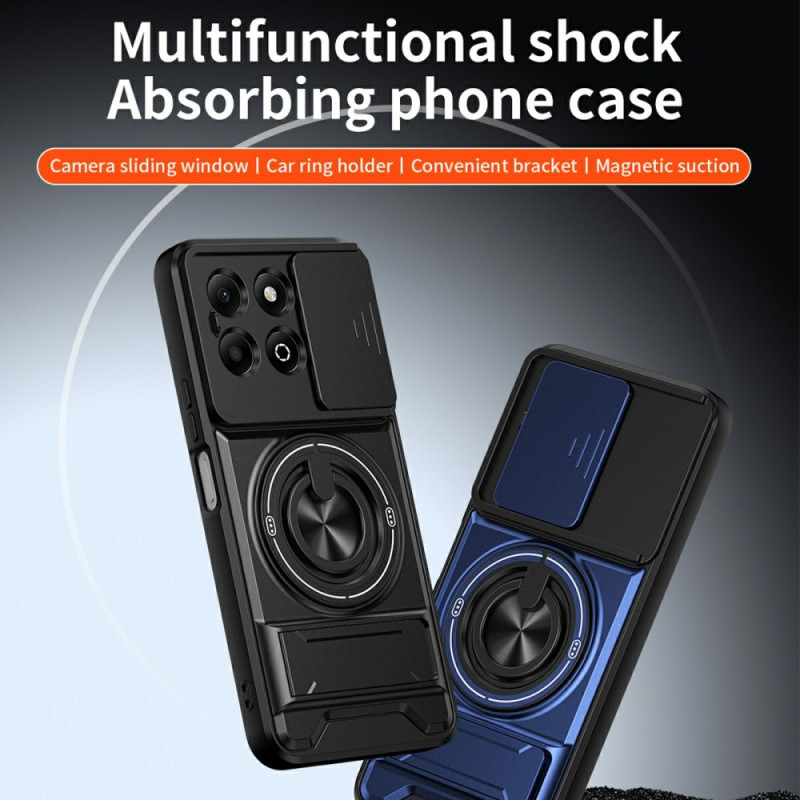 Protege tu Honor X6b 4G con esta funda magnética multifuncional. Con un anillo giratorio de 360°, un soporte plegable y una tapa deslizante para el objetivo, combina una protección reforzada con la practicidad del día a día.