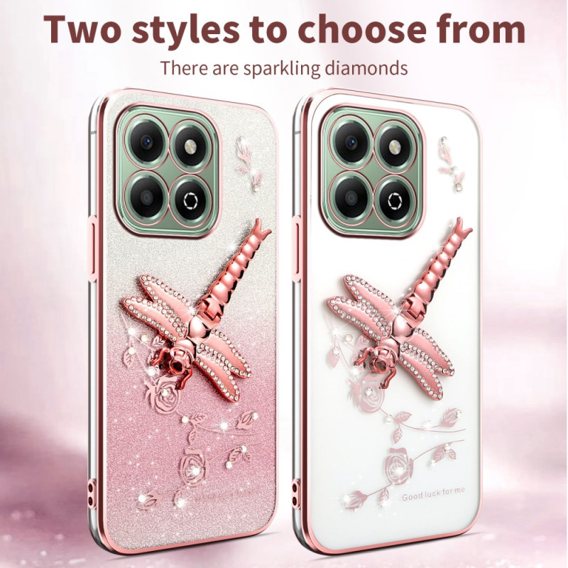 Protege tu Honor X6b 4G con estilo con esta brillante funda adornada con flores eternas y brillantes. Su soporte de libélula integrado permite ver con las manos libres, mientras que sus bordes elevados protegen eficazmente tu cámara.