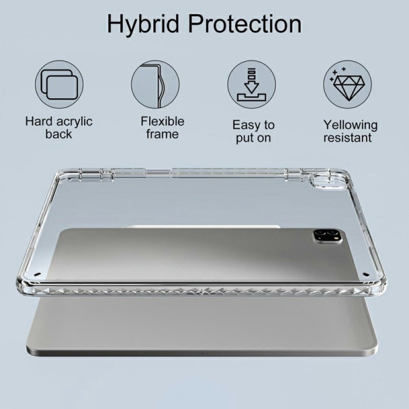 Descubre nuestra funda transparente y elegante para iPad Pro 11. Combinando acrílico cristalino y TPU flexible, ofrece una protección óptima contra golpes y caídas. Con esquinas reforzadas, recortes precisos y compatibilidad total con el Apple Pencil, esta funda fina y ligera es la compañera perfecta para tu tableta.