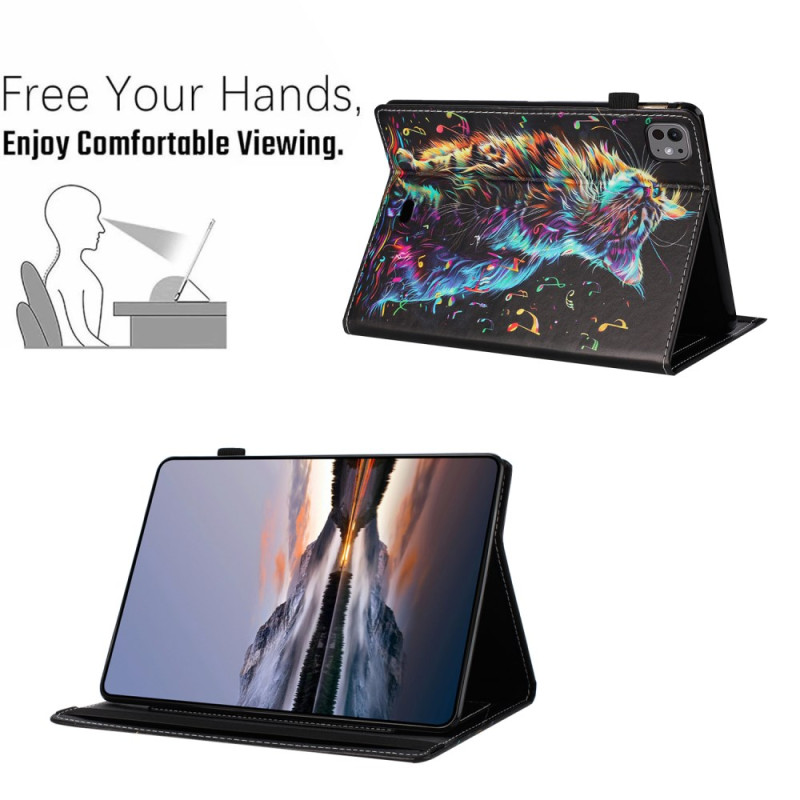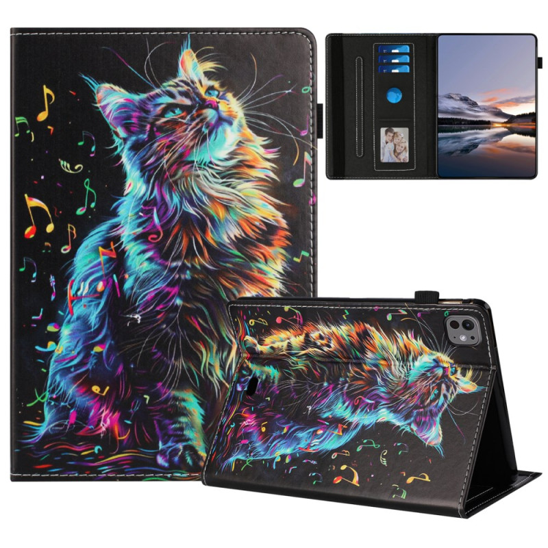 Découvrez notre étui de luxe pour iPad Pro 11 (2025) / 11 (2024), alliant style et fonctionnalité. Avec son motif de chat musical unique, son support multi-angles et son porte-cartes intégré, cet étui en cuir PU offre une protection optimale et un confort d'utilisation inégalé. Profitez de la fonction veille/réveil automatique pour économiser la batterie.