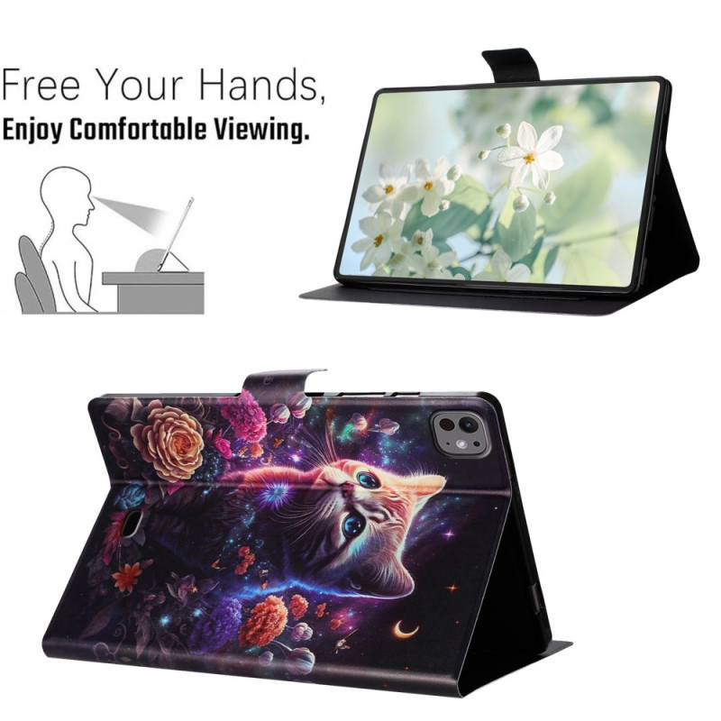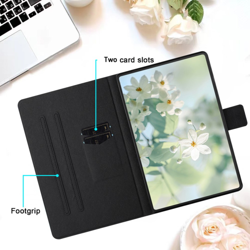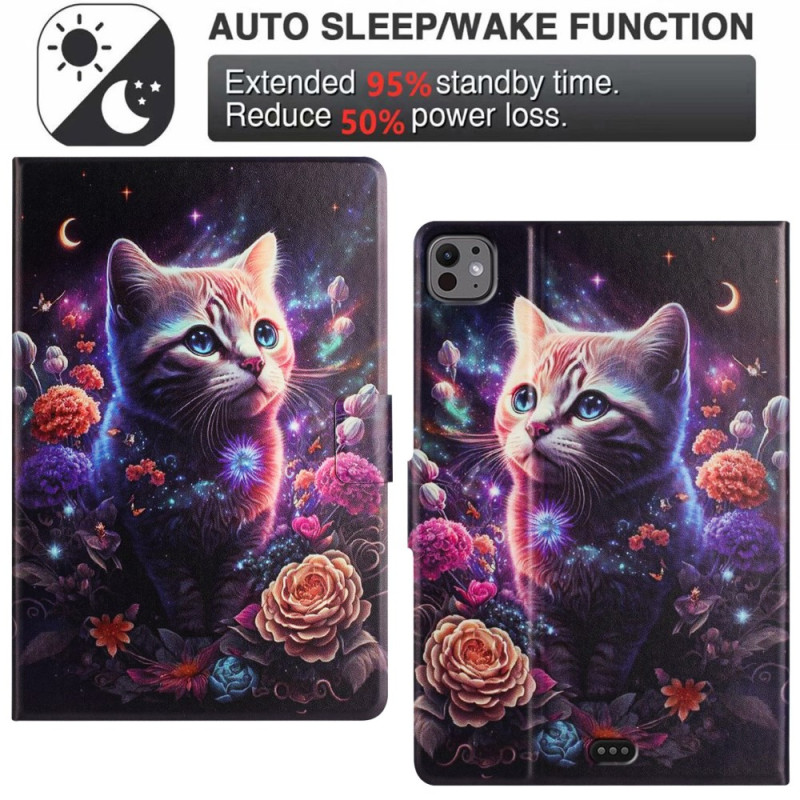 Descubre nuestra versátil funda para iPad Pro 11 (2025) / 11 (2024). Con su elegante diseño estampado, piel de PU con textura de lichi y resistente base de TPU, ofrece estilo y protección. Disfruta de funciones prácticas como ranuras para tarjetas, soporte multiángulo y función de despertador/reposo automático.