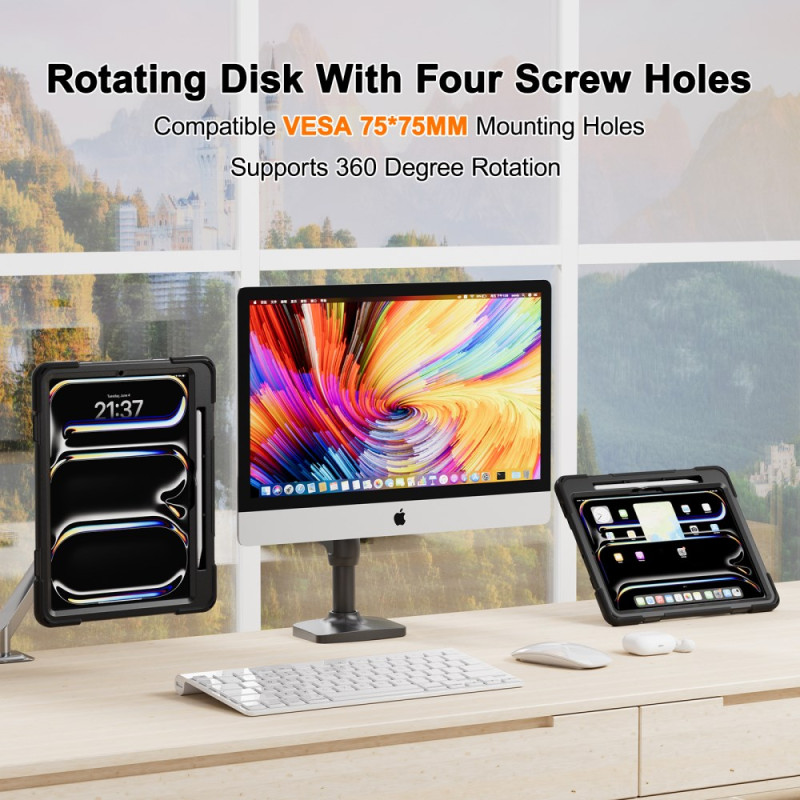 Découvrez notre étui robuste pour iPad Pro 11 (2025) / 11 (2024) avec support rotatif à 360°. Offrant une protection complète contre les chocs et les rayures, il dispose d'un support intégré pour une visualisation mains libres. Compatible VESA et doté d'un emplacement pour stylet, cet étui allie fonctionnalité et durabilité pour une utilisation optimale de votre tablette.