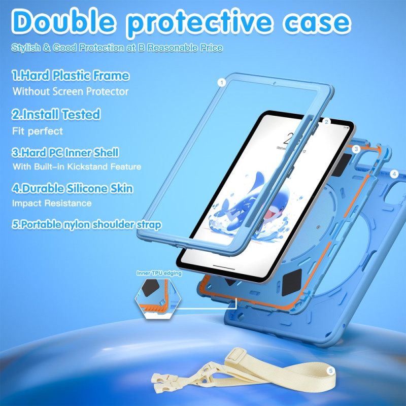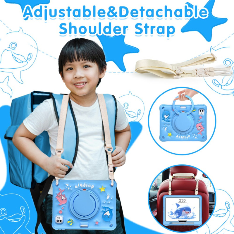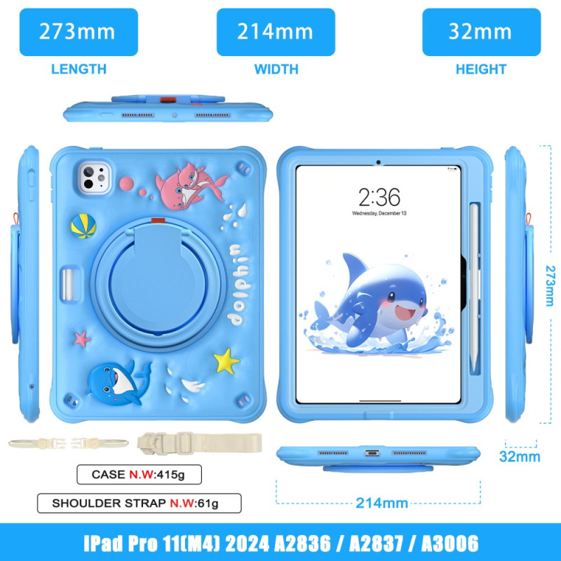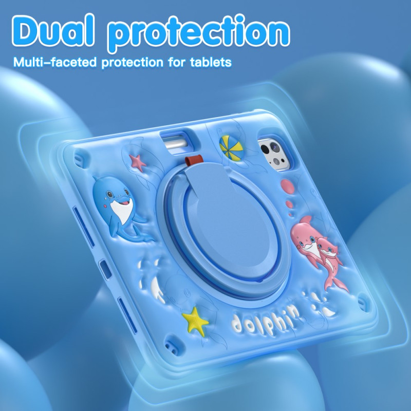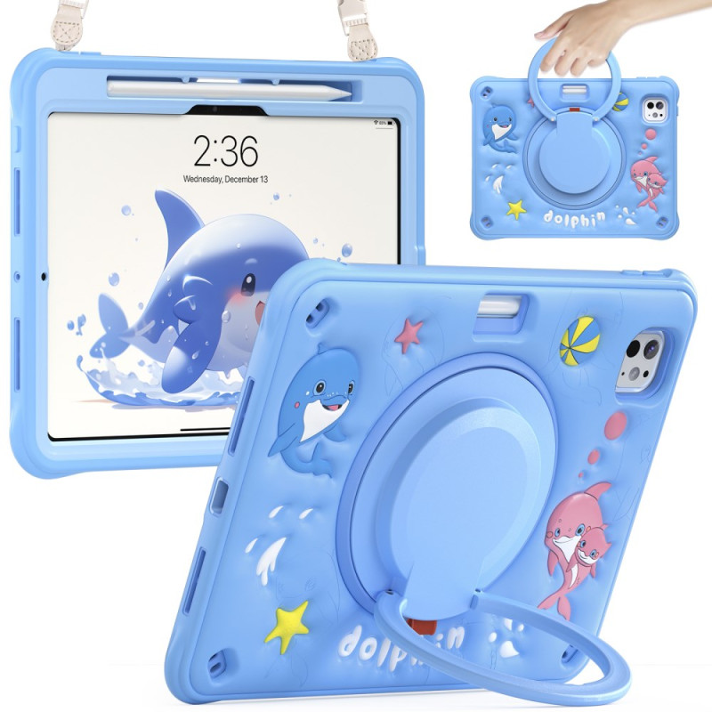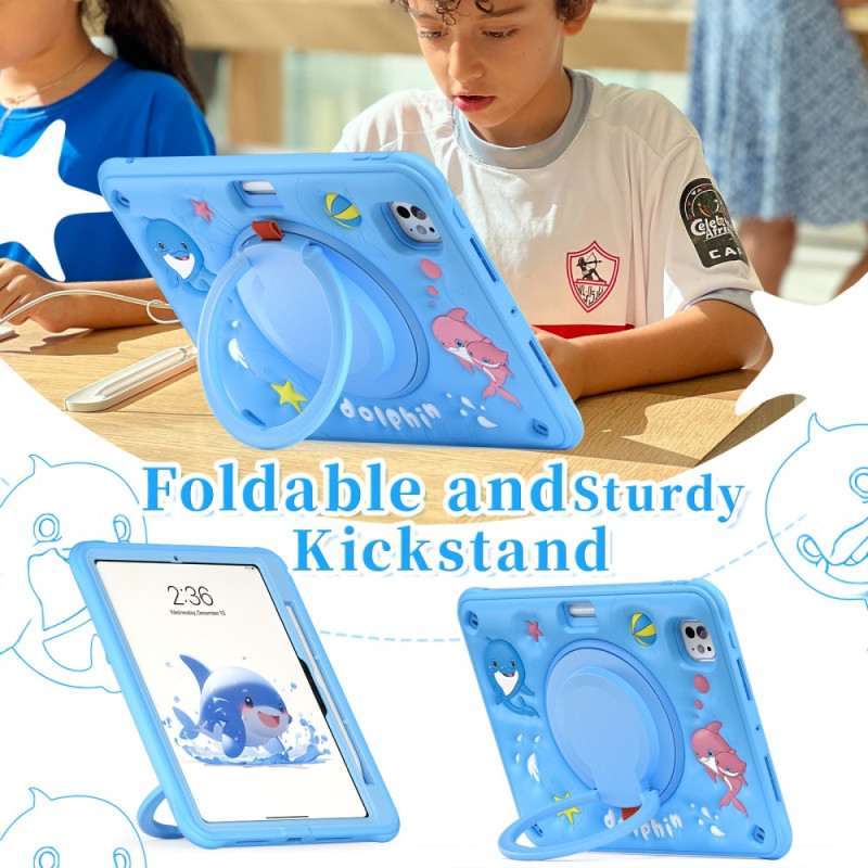 Descubre nuestra adorable funda multifunción para iPad Pro 11 (2025) / 11 (2024). Con su bonito diseño de delfín, protección multicapa, asa giratoria y soporte plegable, ofrece la máxima protección y versatilidad. También puedes aprovechar el portalápices integrado y la colgante desmontable para el hombro para una máxima portabilidad.