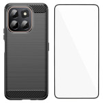 Protege tu Honor X6c 4G con esta elegante funda de TPU y su lámina de cristal templado incluida. Diseño con textura de efecto cepillado y fibra de carbono para un aspecto moderno y deportivo. Protección completa con bordes elevados para la pantalla y la cámara.