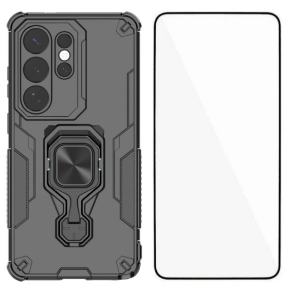 Protección completa para su Samsung Galaxy S26 Ultra. Esta robusta funda combina PC duro y TPU blando para una protección óptima contra impactos. Incluye un práctico soporte plegable y un protector de pantalla de cristal templado.