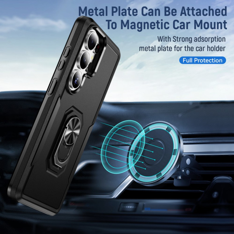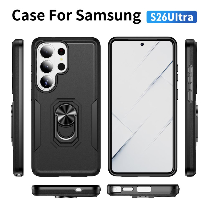 Protégez votre Samsung Galaxy S26 Ultra avec cette coque robuste de qualité militaire. Dotée d'un anneau rotatif à 360° servant de support, de bords surélevés pour protéger l'écran et la caméra, et compatible avec les supports magnétiques de voiture. Conception en PC et TPU pour une protection optimale contre les chutes.