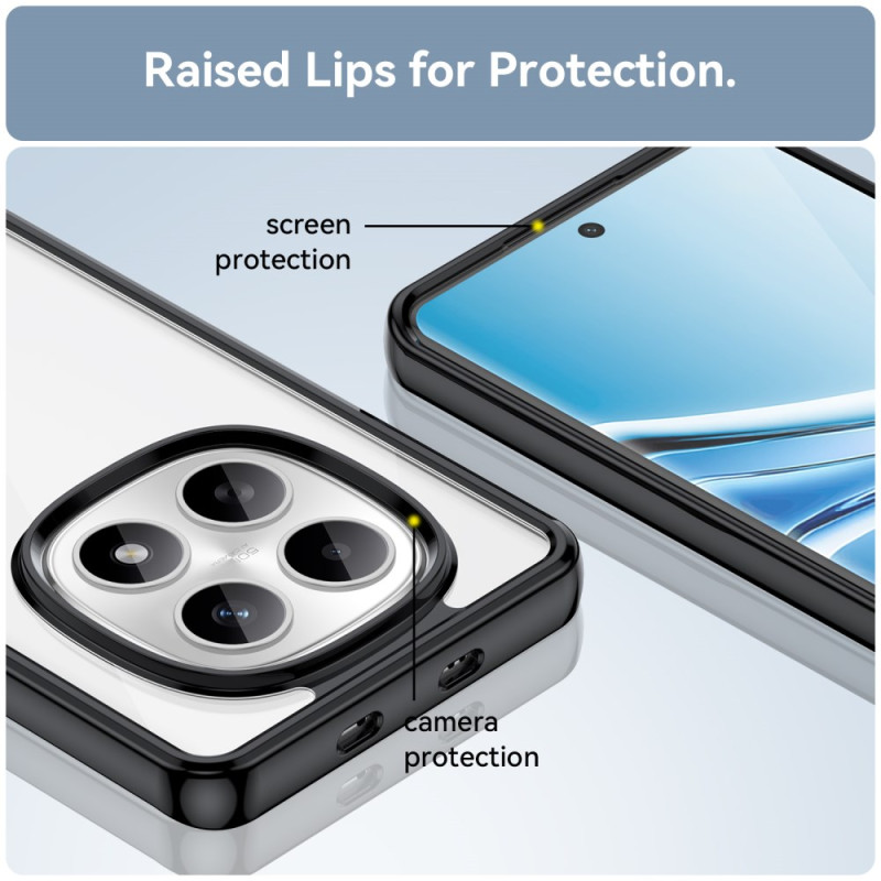 Protege tu Xiaomi Redmi Note 15 4G con esta funda resistente. Diseño híbrido de acrílico transparente con refuerzos en las esquinas, cristal templado HD integrado y protección elevada de la pantalla y la cámara. Los elegantes botones galvanizados y el gran recorte para el objetivo garantizan fotos nítidas.