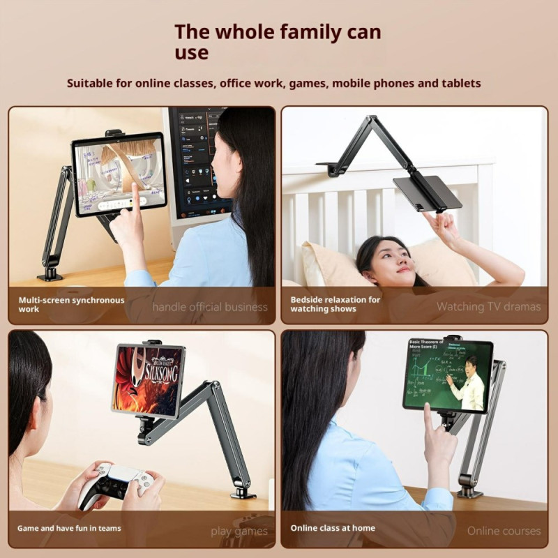 Libérese de las limitaciones posturales y optimice su ergonomía de visualización en la cama o en la oficina. Este soporte está diseñado para alojar todos los dispositivos de 4 a 12,9 pulgadas, desde el smartphone más pequeño hasta las grandes tabletas profesionales. Fabricado en aleación de aluminio resistente, proporciona una estabilidad excepcional sin tambalearse. La bisagra ofrece una rotación completa de 360 grados, lo que permite colocarlo perfectamente sobre una cama o superficie de trabajo. Su mecanismo de plegado lo hace compacto para guardarlo o transportarlo.
