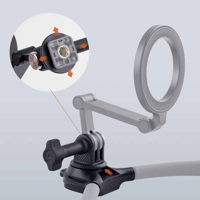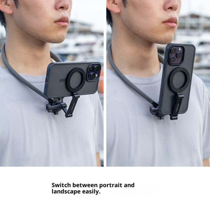 Diseñado con materiales de ingeniería de primera calidad, este soporte POV de PGYTECH transforma la experiencia de crear contenidos inmersivos. Su tubo de cuello de acero inoxidable y su estructura interna de aluminio garantizan una gran estabilidad. La fuerza magnética vertical de 30 N garantiza una fijación ultrasegura del teléfono, incluso en movimiento. El diseño plegable en tres secciones, con una bisagra que absorbe los golpes, permite ajustar el ángulo de visión con precisión y sin esfuerzo. Se puede cambiar rápidamente del modo vertical al horizontal con un solo clic.
