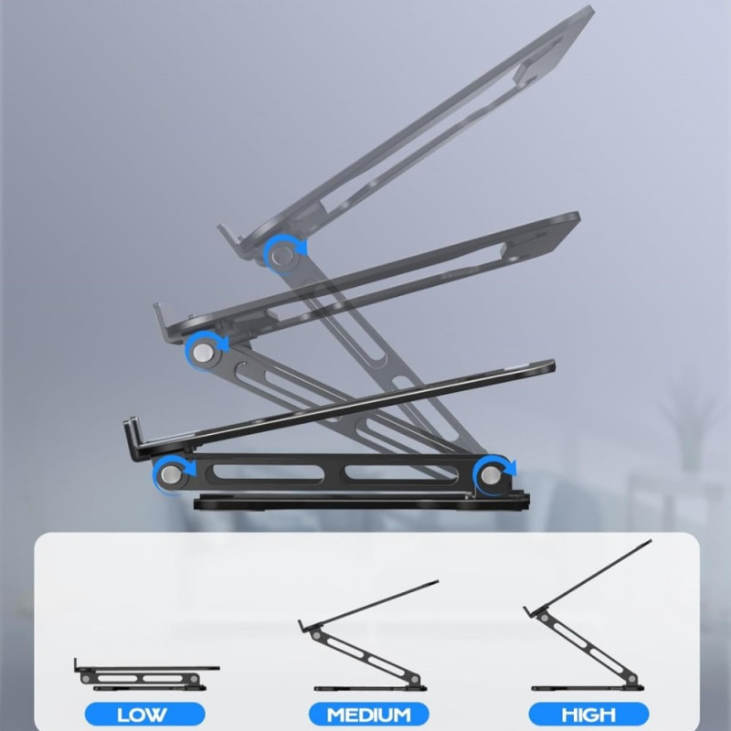 Reducir la tensión del cuello y mejorar el confort visual son los principales objetivos de esta solución de soporte ergonómico. Este soporte permite ajustar la altura y el ángulo del portátil (de 10" a 15,6") para lograr una postura óptima. Su diseño no paralelo favorece una mejor circulación del aire y una mayor disipación del calor, manteniendo el rendimiento del dispositivo. Fabricado en aluminio y plástico de alta calidad, garantiza una excelente estabilidad. El mecanismo de plegado lo hace extremadamente portátil, facilitando su transporte para su uso en la oficina o al aire libre.