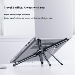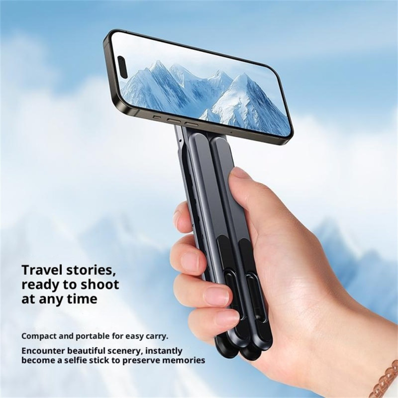Este soporte, una herramienta auxiliar esencial, ofrece un despliegue instantáneo y estabilidad magnética en cualquier superficie de trabajo. Fabricado en aleación de aluminio de alta calidad, proporciona una base duradera y rígida para dispositivos de hasta 6 pulgadas. El sistema magnético N52 permite fijar y retirar el teléfono rápidamente. Su diseño plegable (181x58x19,6 mm cuando está cerrado) facilita enormemente su transporte. El ajuste del ángulo ofrece una solución ergonómica que reduce la fatiga visual y la tensión en el cuello.