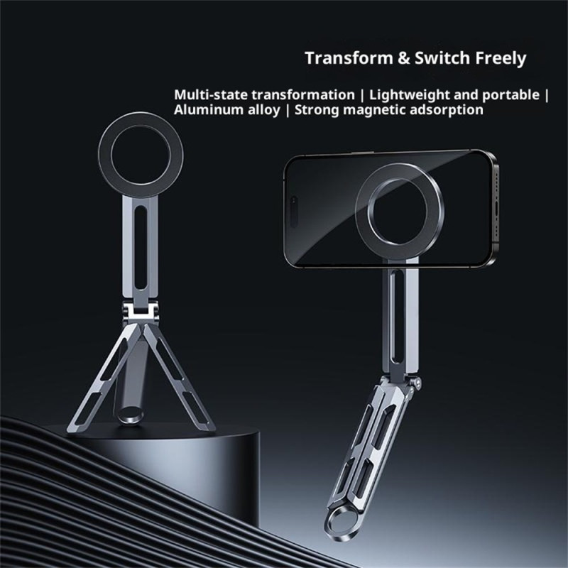 Diseñado para profesionales en movimiento, este soporte elimina la fricción del montaje con cable gracias a la tecnología MagSafe. Fabricado en aleación de aluminio resistente, tiene una estructura estable y pesa sólo 100 gramos. Su diseño totalmente plegable (15x6,5x2,5 cm) permite guardarlo fácilmente en un maletín o bolso. El sistema MagSafe integrado fija el teléfono de forma instantánea y segura mediante un imán. El soporte se adapta a smartphones de 4 a 7 pulgadas, proporcionando una elegante solución manos libres para la oficina o la mesa de viaje.